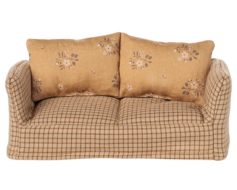 Elke familie heeft een zachte bank nodig om op uit te rusten. De muizenfamilie kan er samen knus op zitten en hij past perfect in de woonkamer. Voeg het houten salontafeltje toe om je huiskamer af te maken.