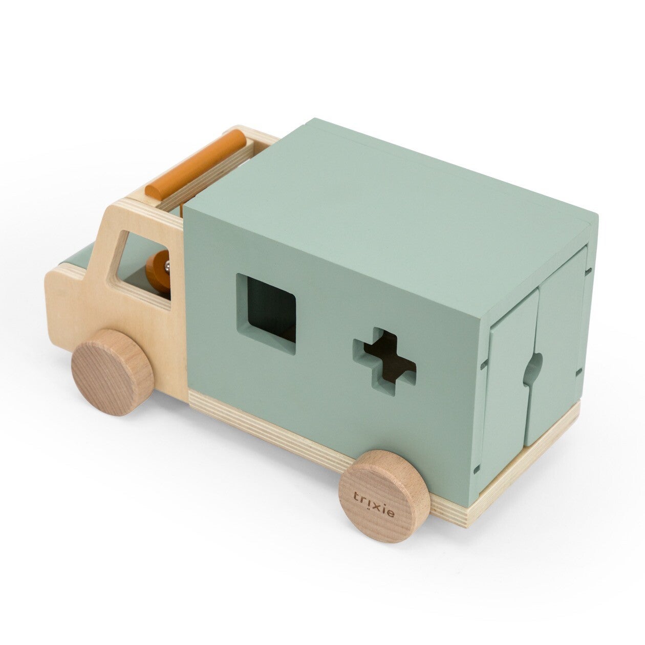 Onze dierenvrienden zijn op weg om iemand in nood te helpen. Deze houten ambulance spreekt onmiddellijk tot de verbeelding van kinderen.