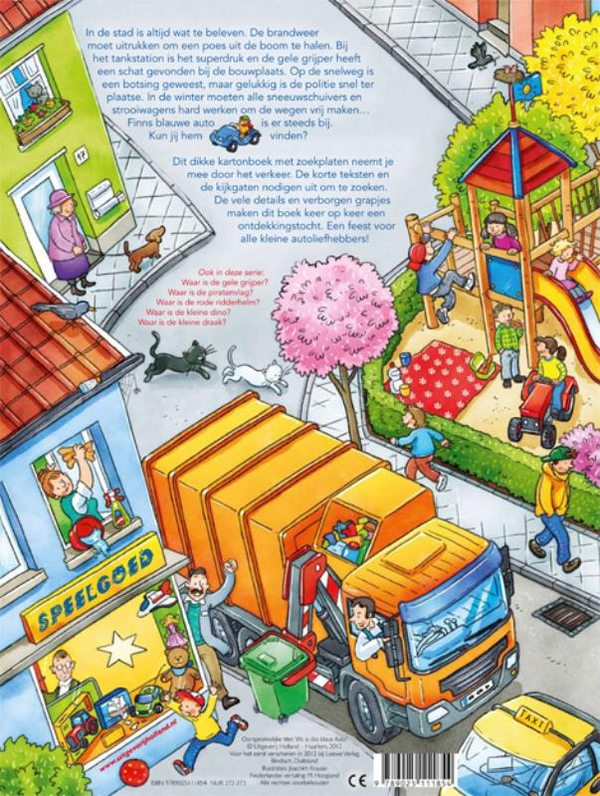 Dit dikke kartonboek met zoekplaten neemt je mee door het verkeer. De korte teksten nodigen uit om te zoeken. De vele details en verborgen grapjes maken dit boek keer op keer een ontdekkingstocht. Een feest voor alle kleine en grote autoliefhebbers!