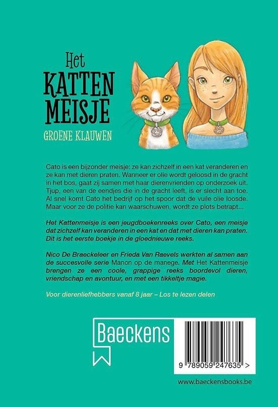 Nico De Braeckeleer en Frieda Van Raevels werkten al samen aan de succesvolle serie Manon op de Manege. Met Het Kattenmeisje brengen ze een coole, grappige reeks boordevol dieren, vriendschap en avontuur, en met een tikkeltje magie.