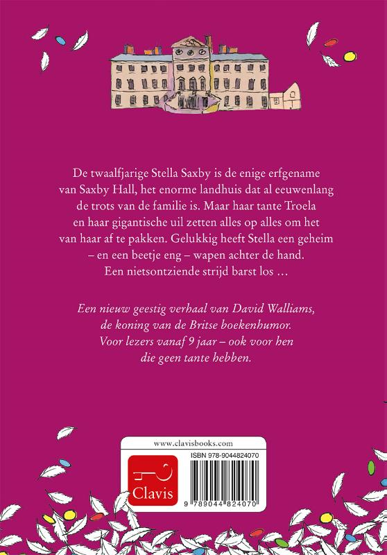 De twaalfjarige Stella Saxby is de enige erfgename van Saxby Hall, het enorme landhuis dat al eeuwenlang de trots van de familie is. Maar haar tante Troela en haar gigantische uil zetten alles op alles om het van haar af te pakken. Gelukkig heeft Stella een geheim - en een beetje eng - wapen achter de hand. Een nietsontziende strijd barst los ... Een nieuw geestig verhaal van David Walliams, de koning van de Britse boekenhumor. Voor lezers vanaf 9 jaar - ook voor hen die geen tante hebben.