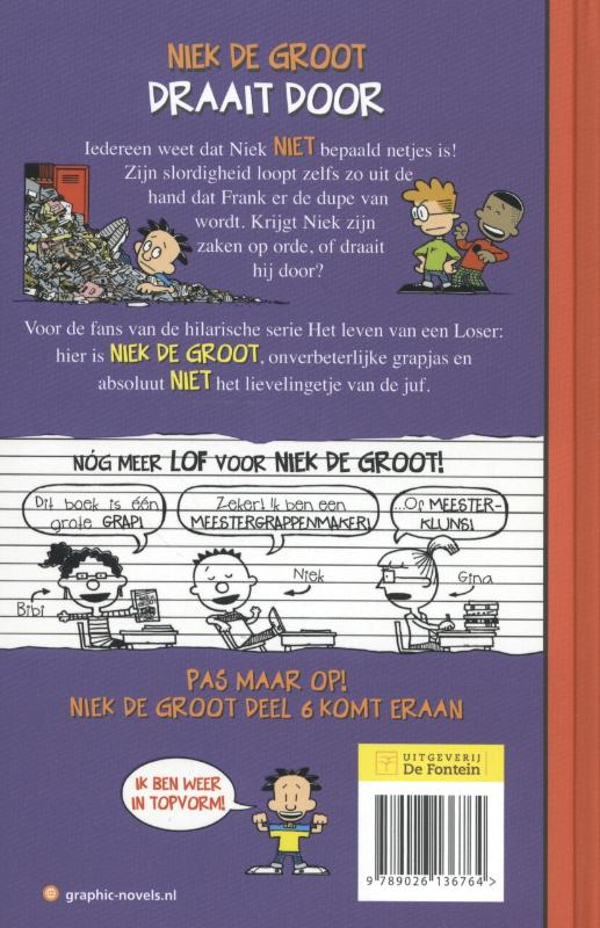 Voor de fans van de hilarische serie Het leven van een Loser van Jeff Kinney: hier is NIEK DE GROOT, onverbeterlijke grapjurk en absoluut NIET het lievelingetje van de juf! In Niek de Groot draait door van Lincoln Peirce lees je hoe ongelooflijk slordig Niek is. Maar wat wil je ook, met zo'n GENIE? Wanneer een leraar Niek het SLORDIGSTE HUISWERK ALLER TIJDEN teruggeeft, flipt Niek. Leraren weten zijn handschrift en zijn BRILJANTE STRIPS niet op waarde te schatten. Op de redactie van het jaarboek loopt het ook al niet lekker en tot overmaat van ramp raakt Niek Franks camera kwijt. Kan Niek de boel redden of draait hij helemaal door? Lincoln Peirce is schrijver en striptekenaar. Niek de Groot verscheen als strip in Amerika in meer dan tweehonderd dagbladen.