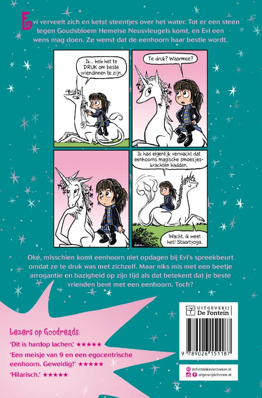 Dus laveert Evi nu door alle basisschoolproblemen met een eenhoorn aan haar zijde. Niks mis met een beetje narcisme en hooghartigheid op zijn tijd als dat betekent dat je beste vrienden bent met een eenhoorn. Toch?