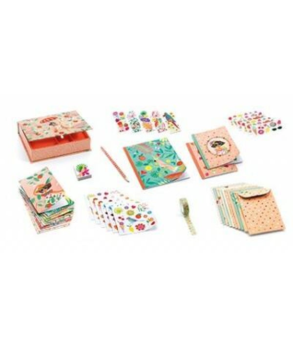 Leuk stationary set. Met oa schrift, notitieboekje, kaartjes, bladwijzers, stickers, kaarten en nog veel meer.