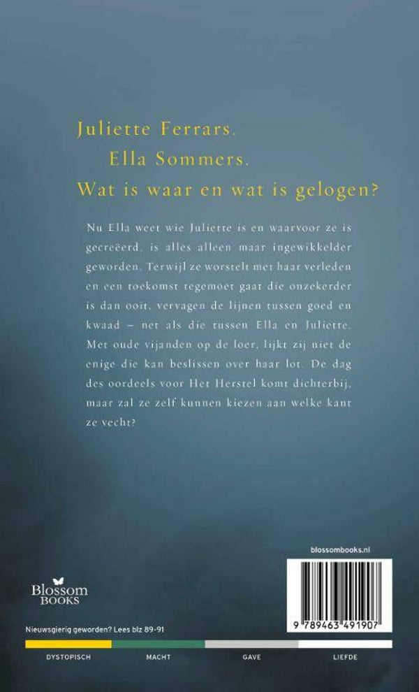 Nu Ella weet wie Juliette is en waarvoor ze gecreëerd, is alles alleen maar ingewikkelder geworden. Terwijl ze worstelt met haar verleden en een toekomst tegemoet gaat die onzekerder is dan ooit, vervagen de lijnen tussen goed en kwaad - net als die tussen Ella en Juliette. Met oude vijanden op de loer, lijkt zij niet de enige die kan beslissen over haar lot. De dag des oordeels voor Het Herstel komt dichterbij, maar zal ze zelf kunnen kiezen aan welke kant ze vecht?