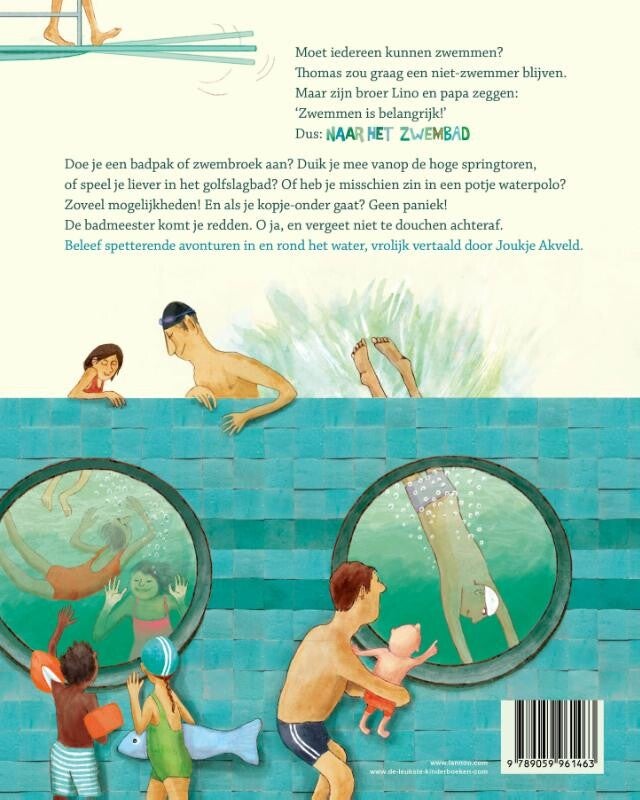 Doe je een badpak of zwembroek aan? Duik je mee vanop de hoge springtoren, of speel je liever in het golfslagbad? Of heb je misschien zin in een potje waterpolo? Zoveel mogelijkheden! En als je kopje-onder gaat? Geen paniek! De badmeester komt je redden. O ja, en vergeet niet te douchen achteraf.