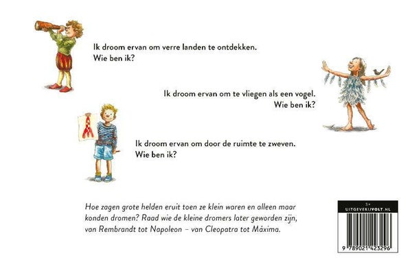 Peter-Paul Rauwerda is de expert op het gebied van historische illustraties. In dit interactieve prentenboek worden kinderen met een vraag uitgedaagd om de jonge versie van de geschiedenishelden te herkennen. Hoe zagen de helden eruit als kind en hoe zijn ze later geworden? Van Einstein tot Rembrandt en van Cleopatra tot Annie M.G. Schmidt.+