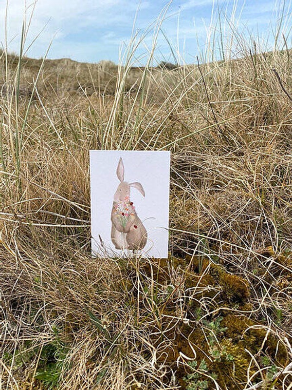 De kleine kaart heeft een A6 formaat. De illustraties zijn handgemaakt door Rixt-Marieke.