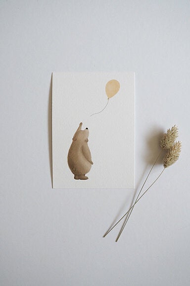 Beertje laat ballon los.