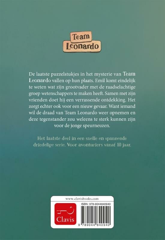 Het laatste deel in een snelle en spannende driedelige serie. Voor avonturiers vanaf 10 jaar. De laatste puzzelstukjes in het mysterie van Team Leonardo vallen in hun plaats. Emil komt eindelijk te weten wat zijn grootvader met de raadselachtige groep wetenschappers te maken heeft. Samen met zijn vrienden doet hij een verrassende ontdekking. Het zorgt echter ook voor een nieuw gevaar. Want iemand wil de draad van Team Leonardo weer opnemen en deze tegenstander zou weleens te sterk kunnen zijn voor de jonge speurneuzen.