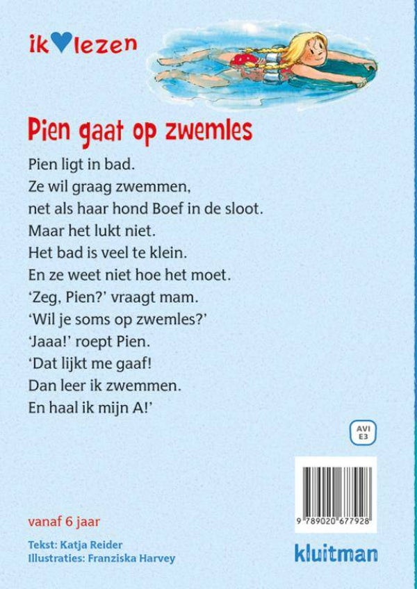 De eerste keer vindt Pien het best wel spannend om het water in te gaan zonder haar moeder én zonder bandjes. Maar dankzij de leuke spelletjes van de badmeester voelt ze zich al snel als een vis in het water!