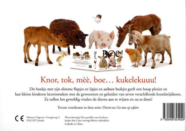 Dit boekje met zijn slimme flapjes en lipjes en aaibare buikjes geeft een hoop plezier en laat kleine kinderen kennismaken met de gewoonten en geluiden van zeven verschillende boerderijdieren. Ze zullen het geweldig vinden de dieren aan te wijzen en na te doen!