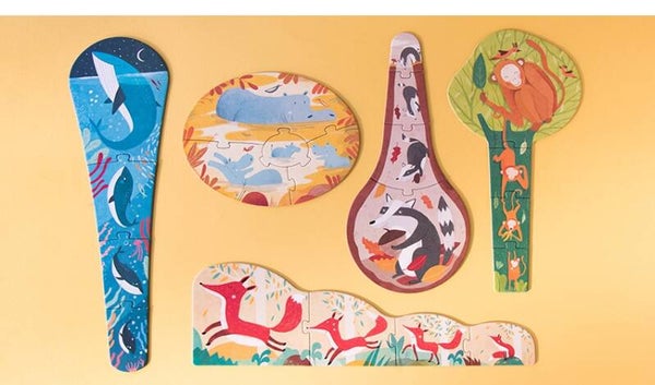 5 puzzels van 4 stukjes zodat de kleinste van het huis kan observeren en spelen.