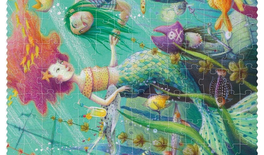 Welkom in het onderwaterkoninkrijk van de zeemeerminnen! Duik naar de bodem van de zee en ontdek hoe leuk het kan zijn om tijd door te brengen tussen deze fantastische wezens. Een schitterende puzzel van 350 stukjes waar iedereen zijn fantasie de vrije loop kan laten!