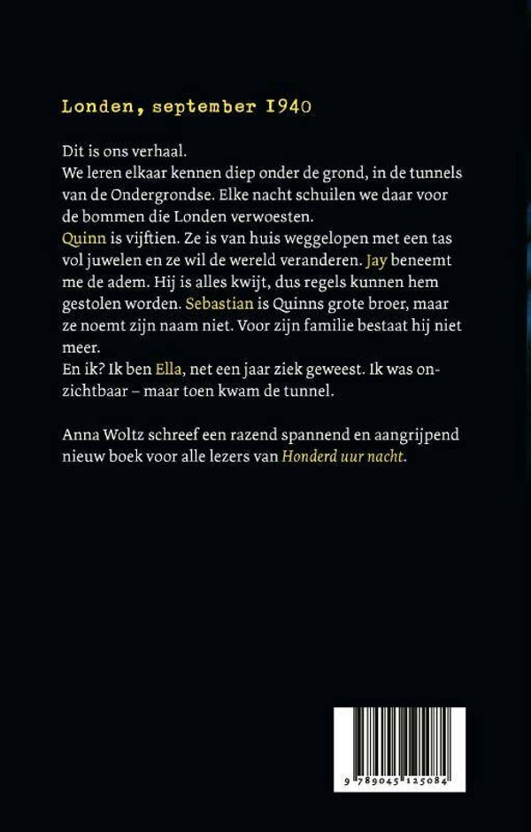 September 1940: de Blitz begint. Maandenlang wordt Londen gebombardeerd. Elke nacht schuilen tienduizenden mensen in de Ondergrondse: ze slapen op de perrons, op stilstaande roltrappen, naast het spoor. Daar, diep onder de grond, leren vier jongeren elkaar kennen.