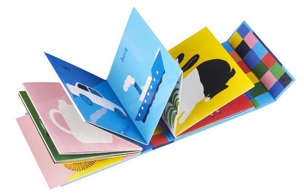 ‘Mooie eerste woordjes’ van de veelbekroonde Milja Praagman is echte kinderkamerkunst. Dit prachtige uitvouwbare kinderboek is perfect om kennis te maken met nieuwe concepten en het leren van eerste woordjes. Milja zet minimalistisch en in treffende kleuren een heldere illustratie op de pagina, en beeldt zo 32 belangrijke eerste woordjes uit, van hond en kat tot wortel en speen. Het accordeonboekje heeft een luxe magneetsluiting aan de zijkant en het prachtige cadeauboek laat zich uitvouwen tot een meter aan illustratiepracht: heerlijk om vanuit je wiegje naar te blijven kijken of om op de vloer al kruipend te ontdekken.